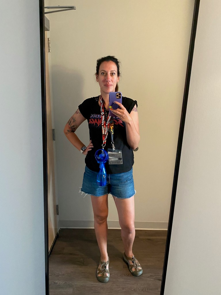 Bonus: Universal Orlando is now also selling fantastic water bottle slings that are a perfect fit for the Owala 19 and 24 ounce FreeSip bottles. And the FreeSips are leak-proof and fit easily on their sides in the free lockers that you’ll find near any ride that doesn’t allow loose items. (I promise Owala isn’t paying me! I’ve just had such great experiences traveling with their water bottles that they’re my go-to recommendation!) See me rocking my Owala in a Universal Orlando water bottle sling in the photo above!